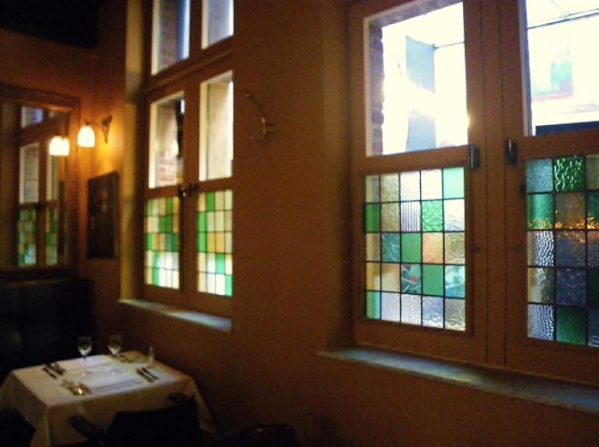 Le petite restaurant, interior hatches between kitchen and restaurant