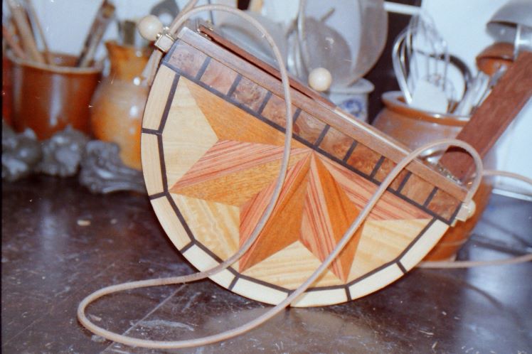 Wooden handbags, inlaid veneer