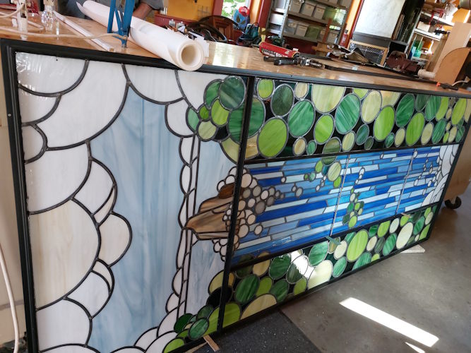 Stained glass window waterfall
